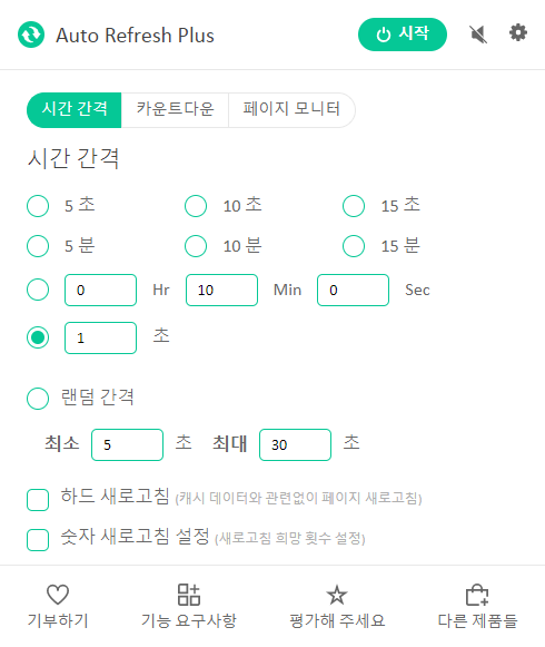 Auto Refresh Plus 설치 후 설정 화면(시간 간격 설정)