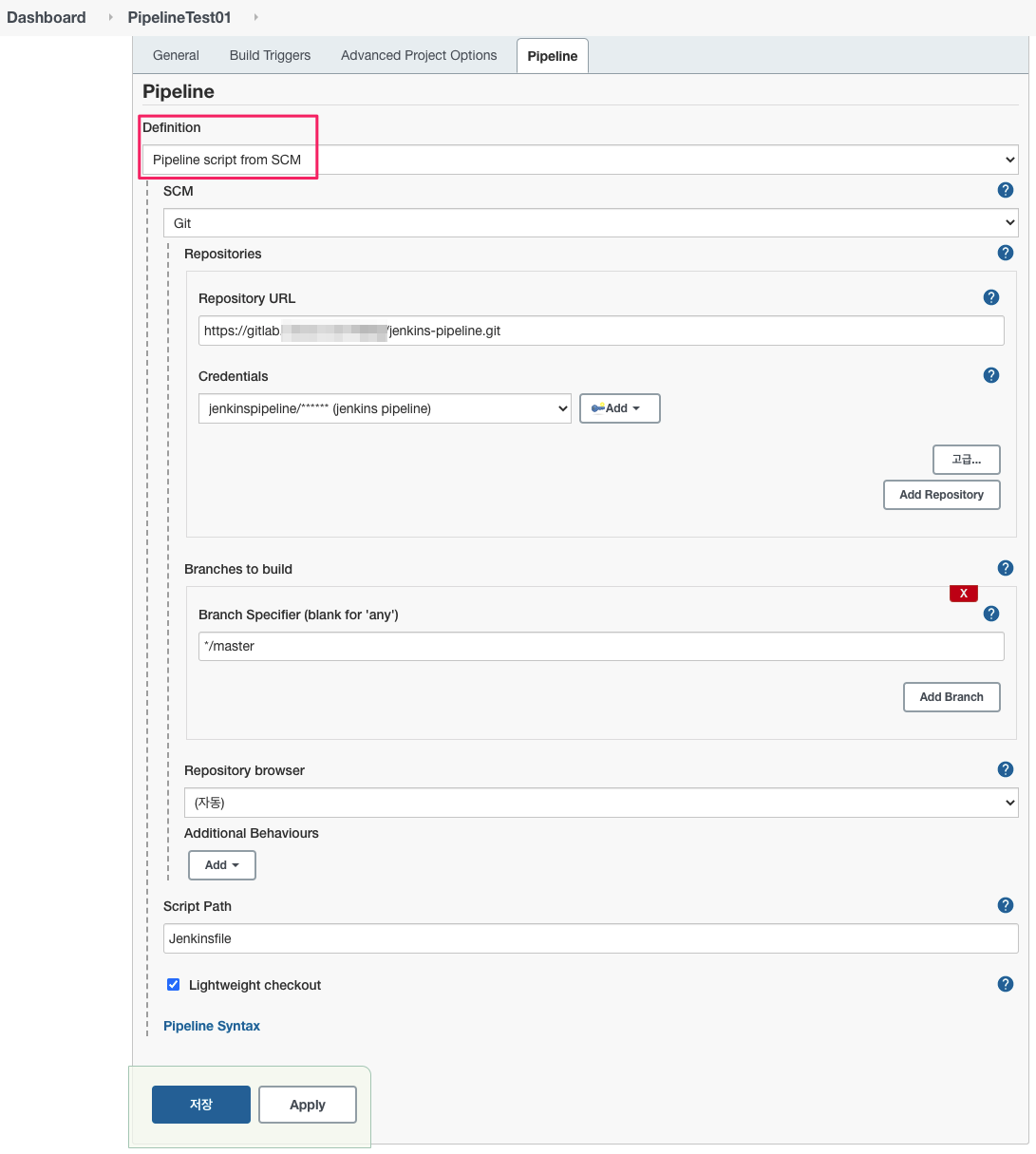 파이프라인 설정