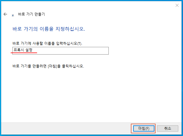 원도우에서 "프록시 설정" 바로 가기 만들기