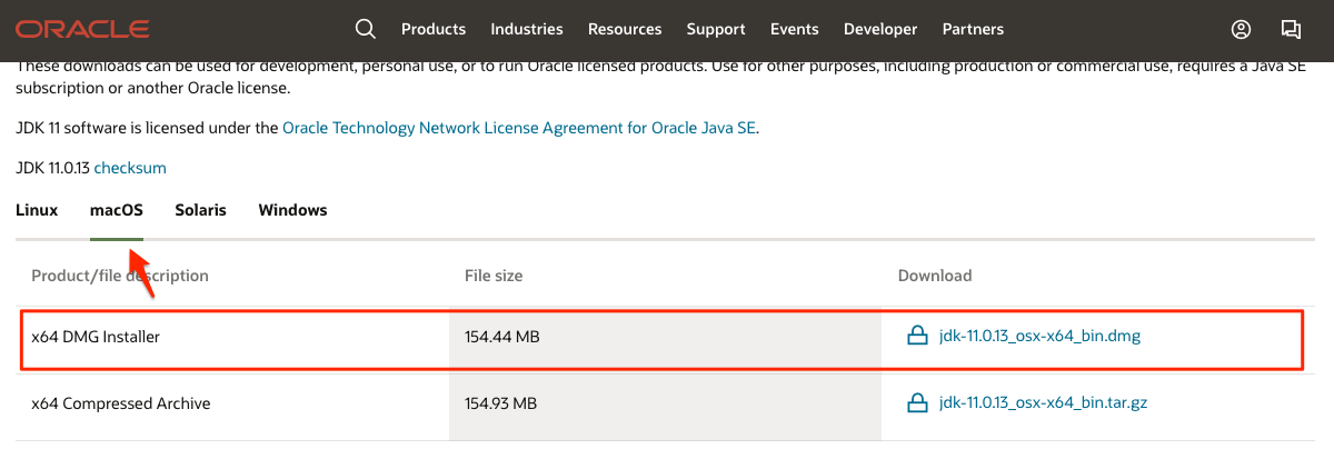 Oracle JDK 다운로드 URL : https://www.oracle.com/java/technologies/downloads/#java11-mac