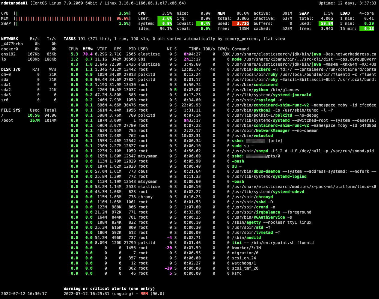 Glances를 실행하면 시스템의 여러 가지 성능 및 리소스 사용 정보를 쉽게 확인할 수 있습니다. 터미널에서 Glances를 실행한 후 필요한 정보를 확인하고 필요에 따라 각 항목의 자세한 정보를 표시할 수 있습니다.