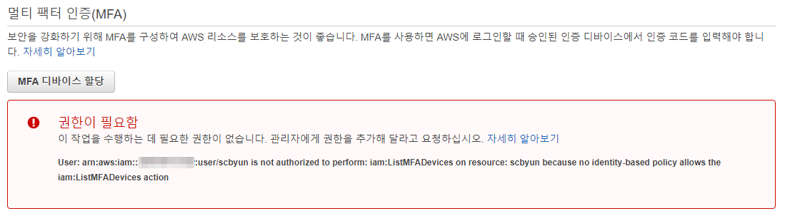 AWS IAM 사용자가 MFA 디바이스를 스스로 관리하도록 허용