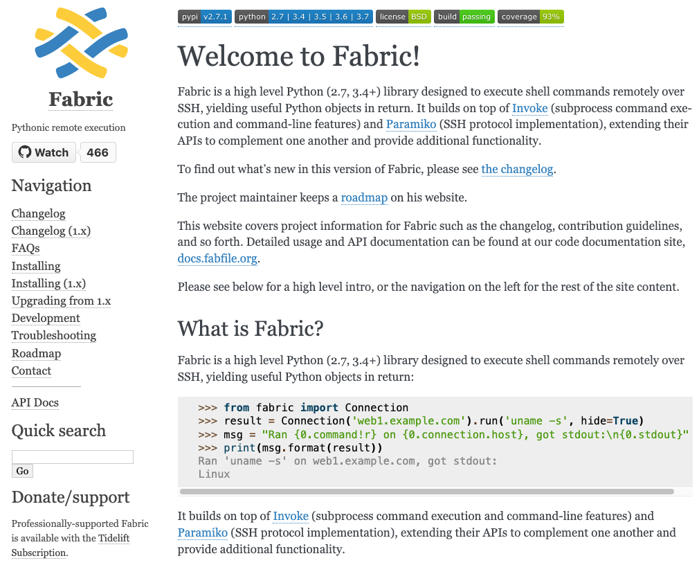 Fabric은 파이썬으로 작성된 서버 관리 및 배포 도구로 특히 SSH를 통한 명령 실행과 파일 전송을 지원합니다. Fabric 2.x 버전은 Fabric 1.x와는 구조가 다르며 여러 기능이 업데이트되었습니다.