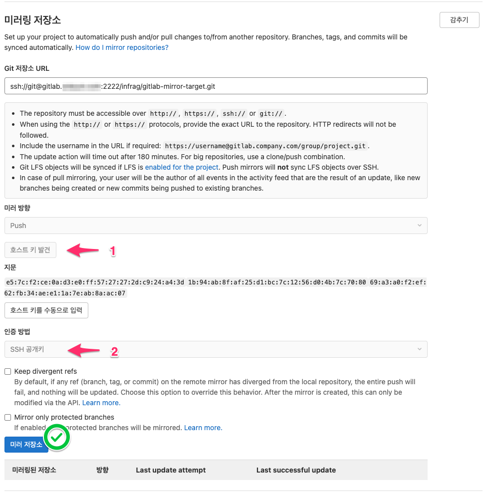 - 미러 리포지토리 SSH URL 필요