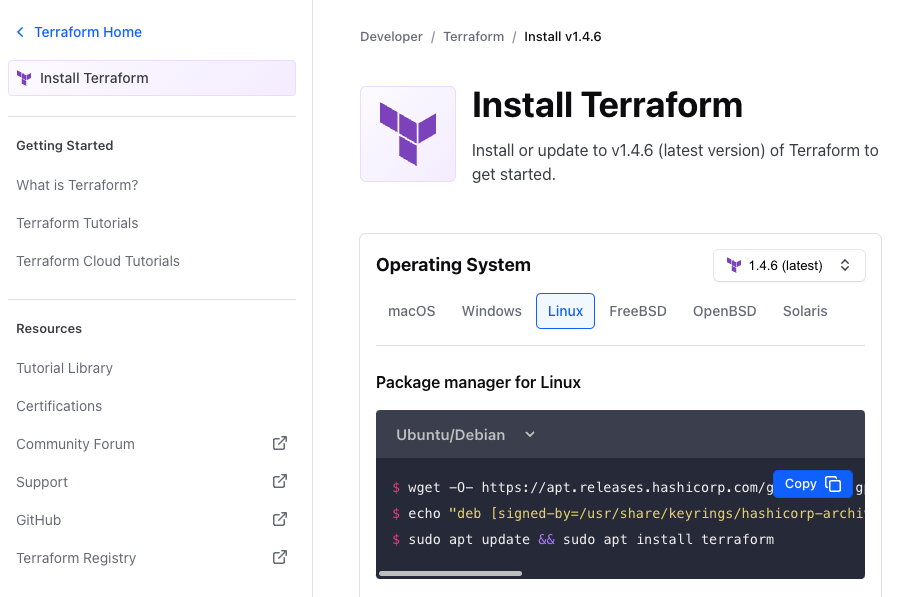- https://developer.hashicorp.com/terraform/downloads
