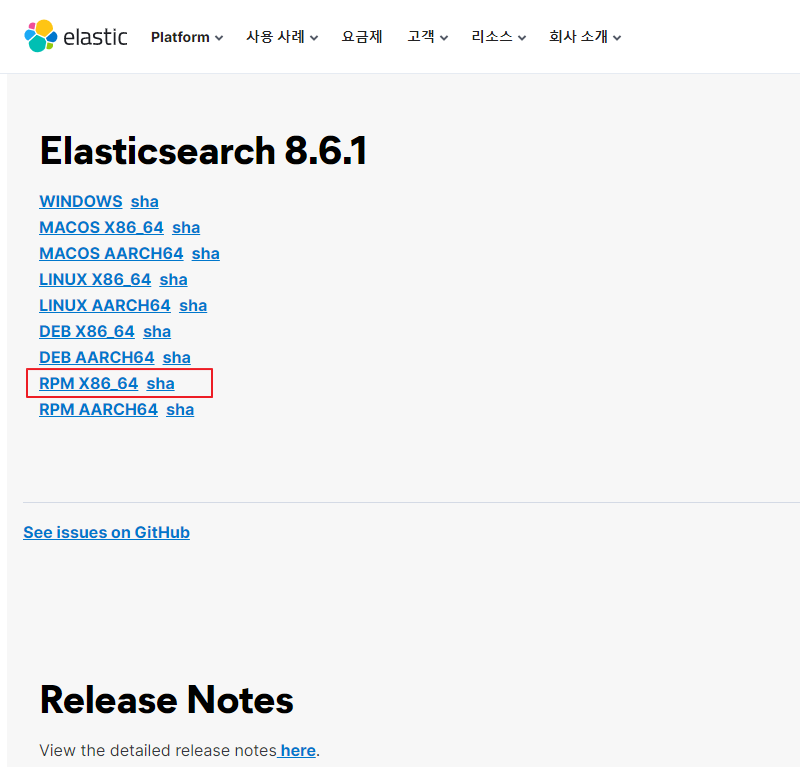 - elasticsearch download : https://www.elastic.co/kr/downloads/past-releases/elasticsearch-8-6-1