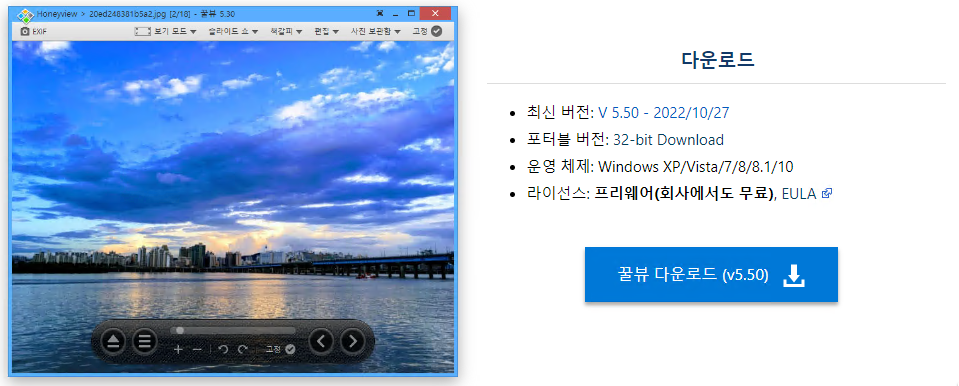 다양한 포맷의 이미지를 빠르게 보여주는 고성능 무료 이미지 뷰어입니다.