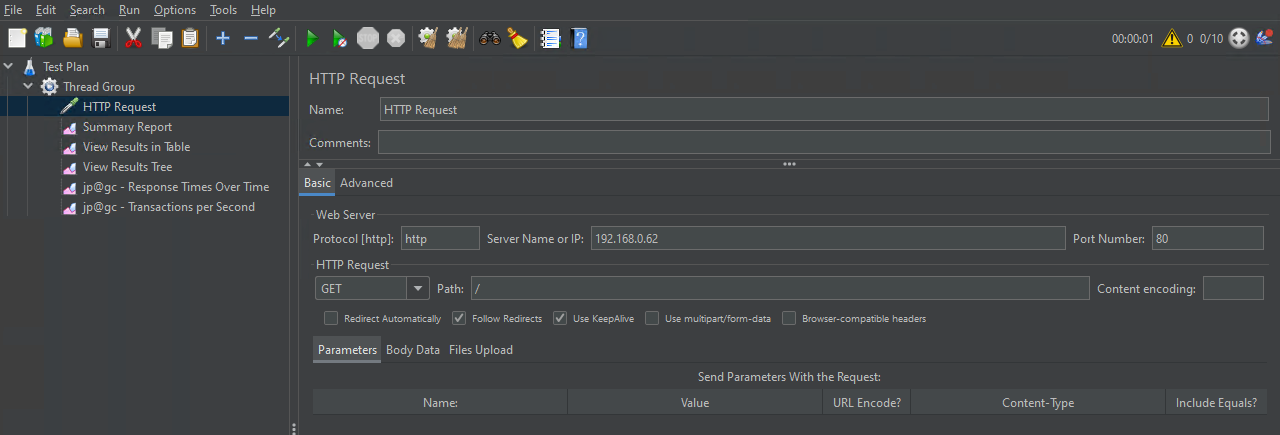 - Name: HTTP Request의 이름을 지정합니다. 이는 테스트 계획에서 식별에 사용됩니다.
