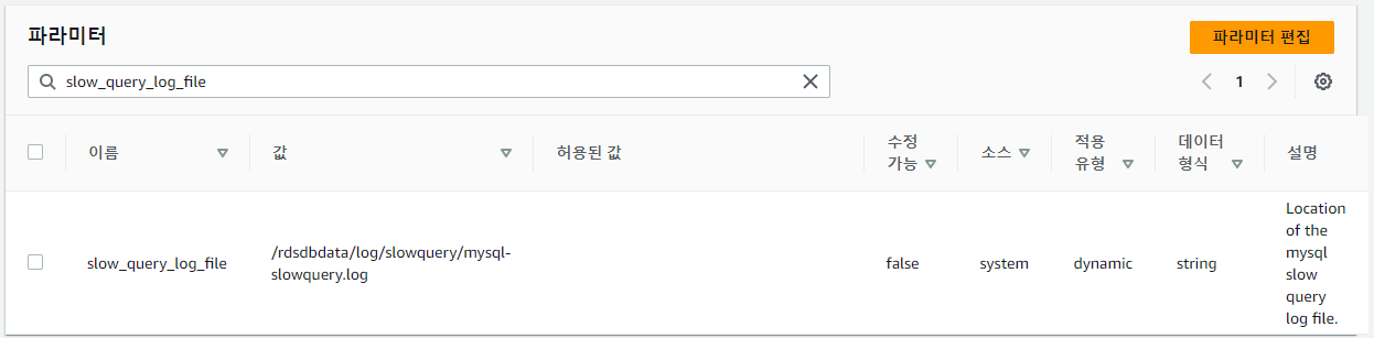 6. slow query log 파일 경로를 설정하기 위해 "slow_query_log_file" 값을 로그 파일 경로로 설정합니다.