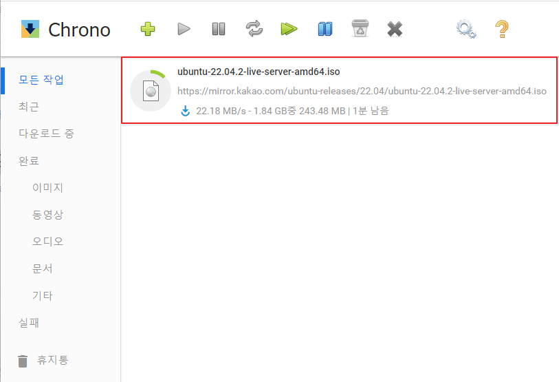 3. 다운로드 링크를 클릭하면 Chrono Download Manager가 자동으로 시작됩니다.