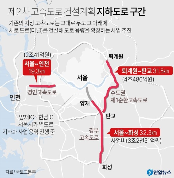서울시가 발표한 경부간선도로 지하화 관련사업 위치도 및 개념도