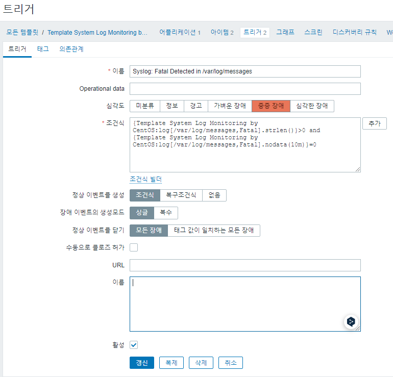 - 템플릿 이름 : Template System Log Monitoring by CentOS