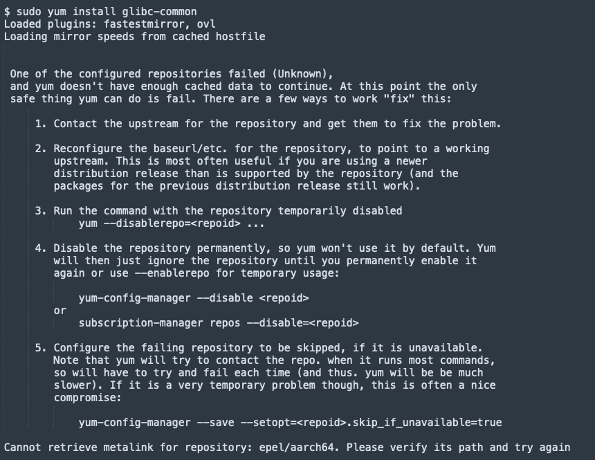 epel/aarch64 저장소에서 메탈링크를 가져올 수 없다는 오류는 EPEL 저장소 메타데이터에 접근하는 데 문제가 있음을 나타냅니다.