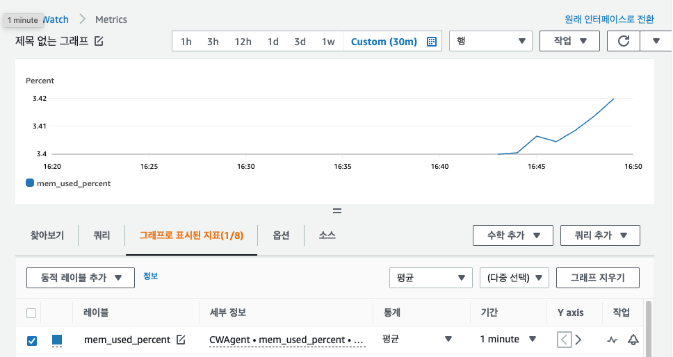 - CloudWatch > 지표 > 모든 지표 > Custom namespaces