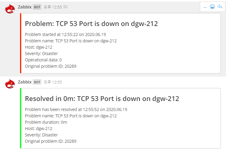 이러한 설정 후, Zabbix 알람 이벤트가 발생하면 Mattermost 채널로 메시지가 전송됩니다. 이를 통해 Zabbix 모니터링 시스템의 알람을 Mattermost로 직접 전달하여 관리자 및 팀원들이 신속하게 대응할 수 있습니다.