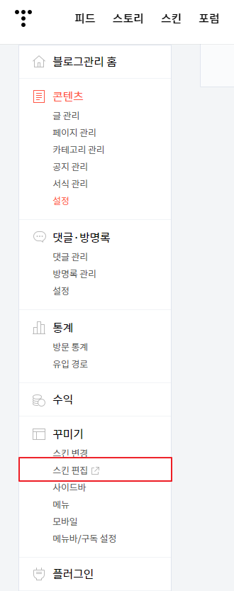 블로그관리 홈 > 꾸미기 > 스킨 편집